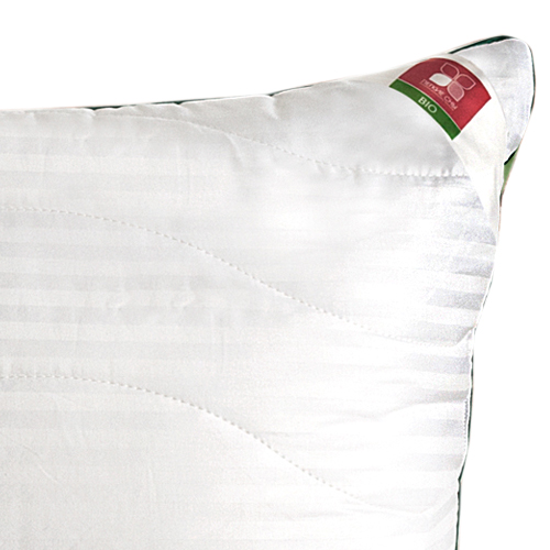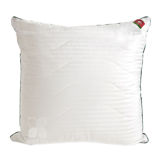 Подушка выполнена из 100% хлопка - сатин с тиснением страйп в белом цвете, отделка по краю подушки кантом травяного цвета, фирменная упаковка конверт ПВД, спанбонд.