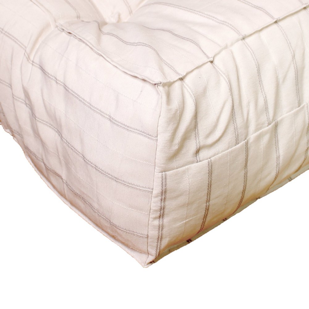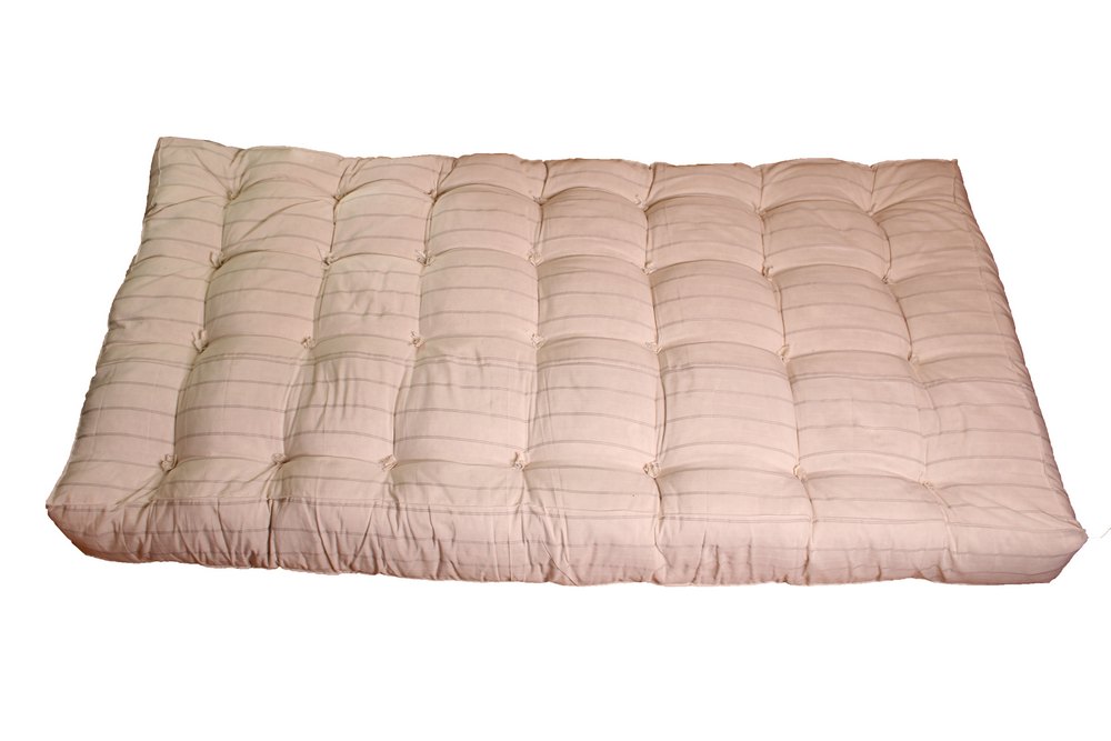 Чехол матраса выполнен из тика, 100% хлопка, что обеспечивает долговечность и устойчивость к истиранию. Наполнитель из белой ваты, 100% хлопок, обеспечивает мягкость и комфорт при использовании.